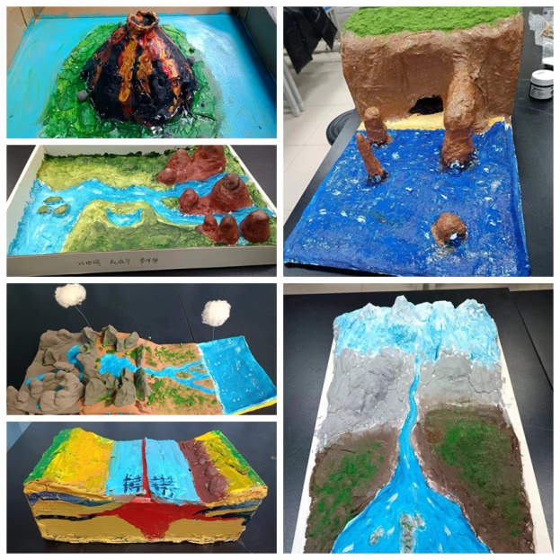 同学们巧思构想,利用废旧纸箱、粘土、陶泥等环保材料,制作了喀斯特地貌、火山、大洋中脊、河流地貌、冰川地貌等模型。从巍峨峻拔的高山到广袤无垠的平原,从奔流不息的江河到光怪陆离的喀斯特地貌,从贯穿大洋的大洋中脊到直入云端的雪山,参赛作品丰富多样、创意十足,让人目不暇接,每一件作品都是一件独具匠心的工艺品,充分展示了我院学子的创新创造能力。