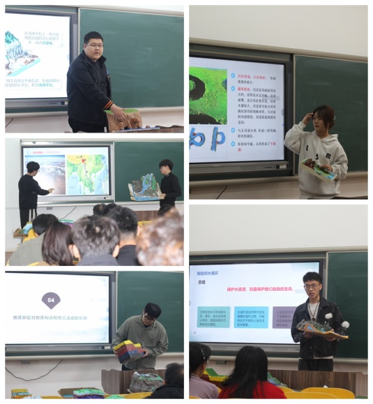 决赛现场,同学们用多媒体讲授的方式对自己制作的模型进行讲解。丰富的视频、动画、图片等材料赋予模型生命力,让前来观摩的师生们感受到足不出户,亦能看遍名山大川,在虚实之间让人领略地球科学的奥妙,俨然把比赛现场变成了精彩有趣的地学科普大讲堂。