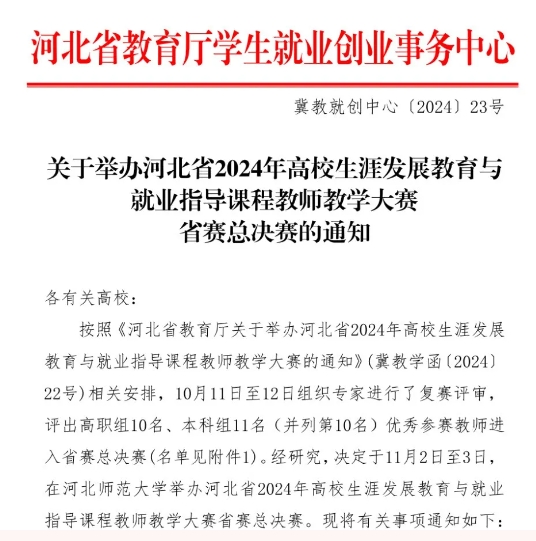 学院教师入围河北省2024年高校生涯发展教育与就业指导课程教师教学大赛省赛总决赛