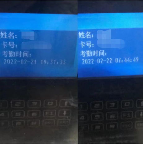 李奕上(左)下(右)班打卡记录。受访者供图