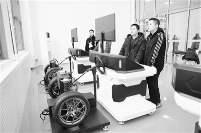 北京电子科技职业学院学生学习智能网联汽车线控底盘技术。受访者供图